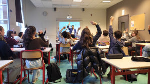 Une quinzaine d’adultes, proches des élèves, étaient réunis dans une salle pour le lancement : deux parents correspondants, la documentaliste du collège Mme Cartron, les professeurs principaux de 4ᵉ, les responsables des niveaux 5ᵉ et 4ᵉ, des éducatrices, la coordinatrice de Vie scolaire, Mme Quiblier, la directrice Mme Vexiau ainsi que des représentants des Formidables. Ce lancement est baptisé « session d’embarquement”.