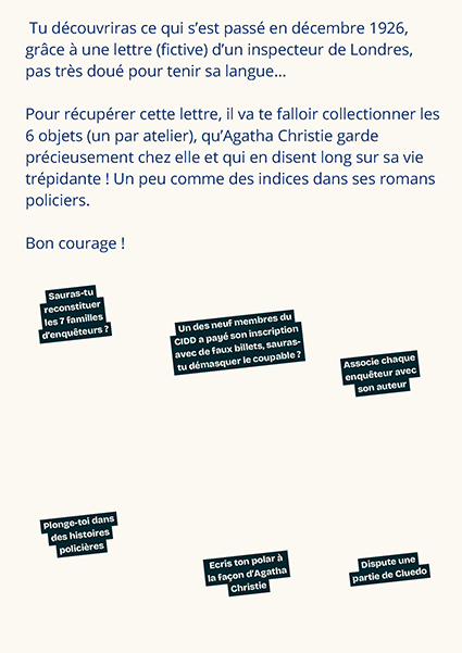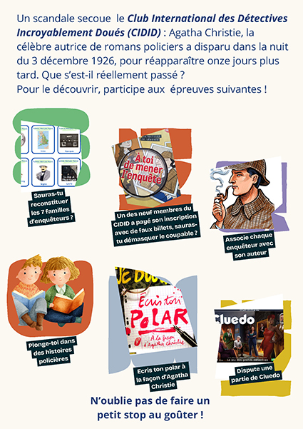 Un scandale secoue le Club International des Détectives Incroyablement Doués (CIDID) : Agatha Christie, la célèbre autrice de romans policiers a disparu dans la nuit du 3 décembre 1926, pour réapparaître onze jours plus tard. Que s’est-il réellement passé ?